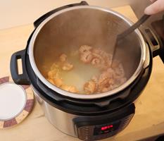 Hitið soðið að suðu og látið krauma við vægan hita í að minnsta kosti 3 klst (eða setjið á pressure cook í 30 mínútur).