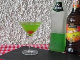 Triple sec, Midori og sítrónusafi settur í koteilhristara ásamt ísmolum og hrist vel.